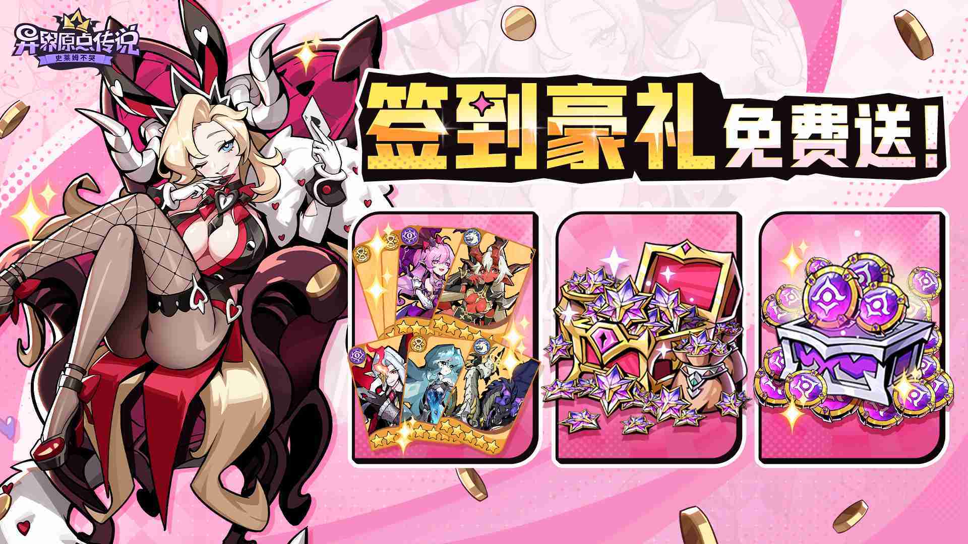 敢在应用商店标注“高福利”的游戏一定不简单。。《史莱姆不哭》的预约福利除了孵蛋抽卡及养成资源外,,,,还有高价值的限定角色皮肤『甜蜜陷阱』。。